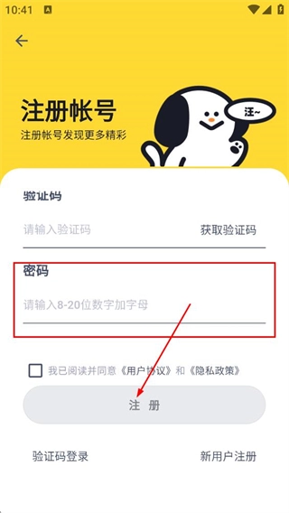3、在密码登录页面,点击新用户注册,进入注册帐号页面。