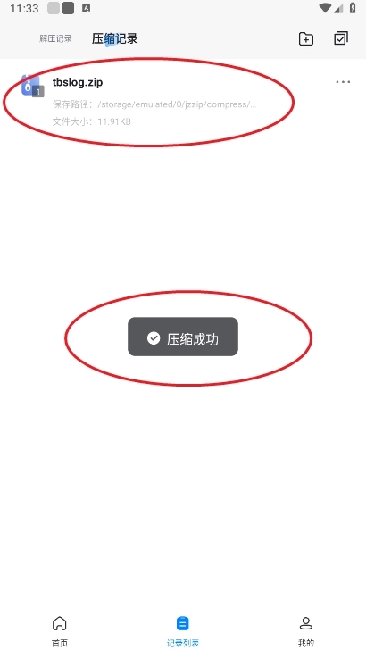 6、然后就能看到一个压缩成功的字样。并且可以在【记录列表】中查看到。