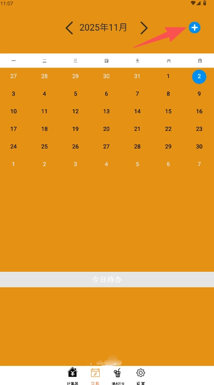 2、在页面点击右上角“+”加号进入添加日程界面。