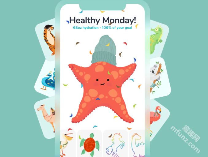 「Waterllama」应用程序中已有超过 45 个可爱的动物角色,让每一天都变得不同。你会很难忍受,不给这些可爱动物装满水,好玩的设计本身就是一种解决方案,刺激着我们的神经,给我们喝水提供了动力。把喝水变成打卡做任务一样,在不知不觉中,我们就习惯上了喝水。
