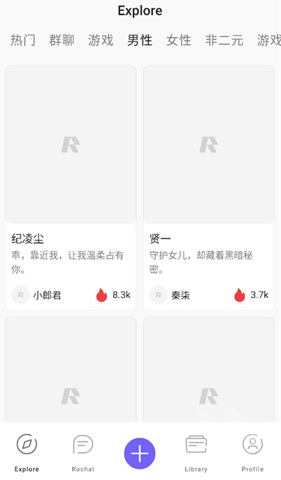 1、在rustchat软件首页可以看到非常多的虚拟角色。