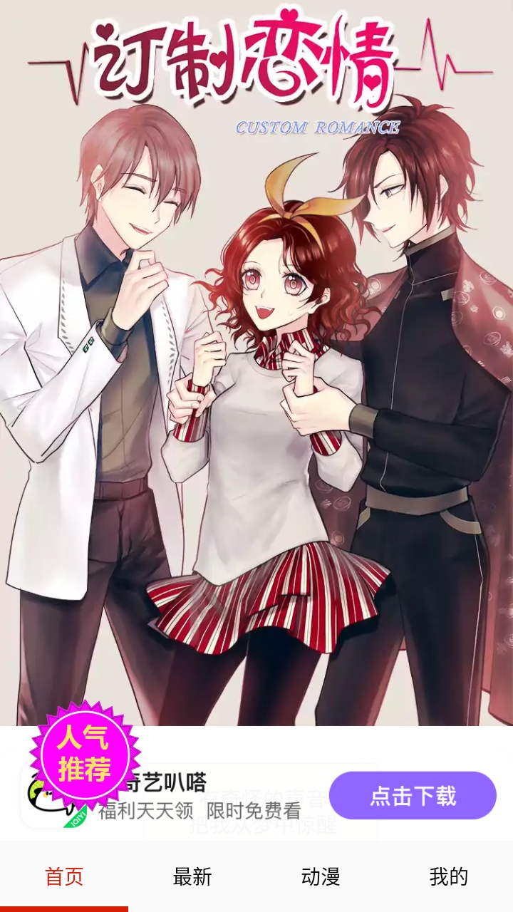 2.进入到软件首页,首页中能提供大量的人气推荐作品。