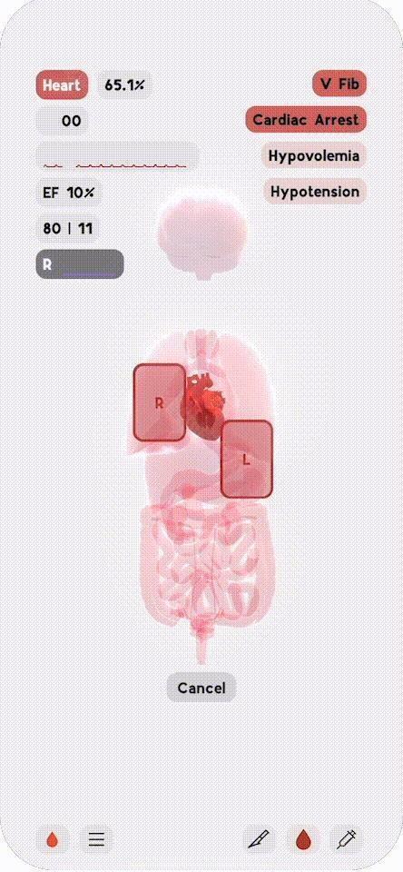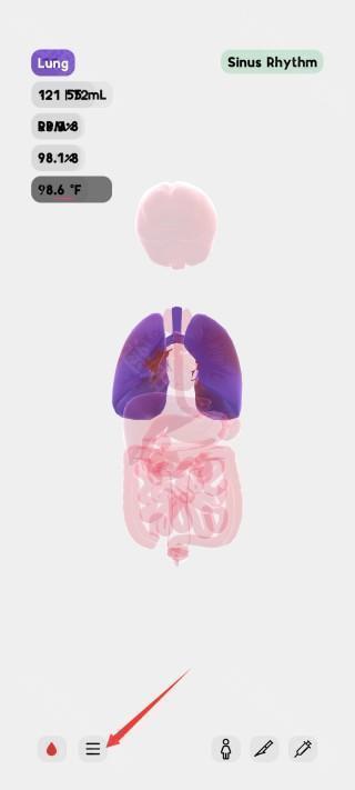 器官面板揭示了每个器官的医疗数据。读取心脏的心电图,大脑的脑电图,GFR以进行肾功能,或检查胃pH值。