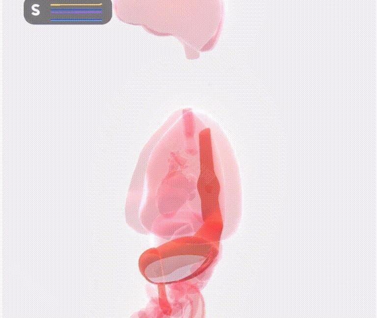 观看您早些时候吃的披萨,穿过30英尺的胃肠道,从推注变成辣椒,最后被排出。