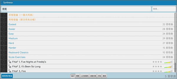 Synthesia 之中不但适合钢琴的加深印象,还设有各种初学者可以使用的基础谱子,当你想要练习钢琴的时候后可以选择直接开始训练,让自己熟悉钢琴的流动。