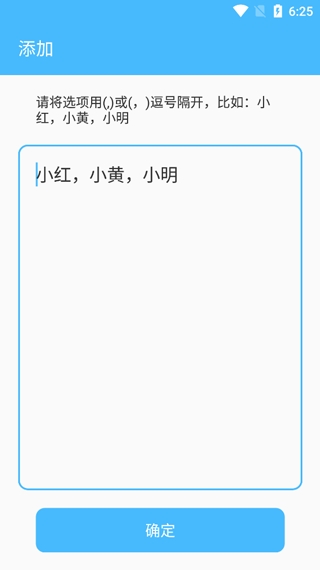 4、在添加页面,在输入框中编辑选项内容,完成后点击确定即可。