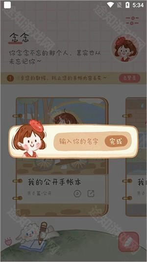 1、在手机上安装并打开念念手帐版,首次进入软件可以为自己取一个好听的名字