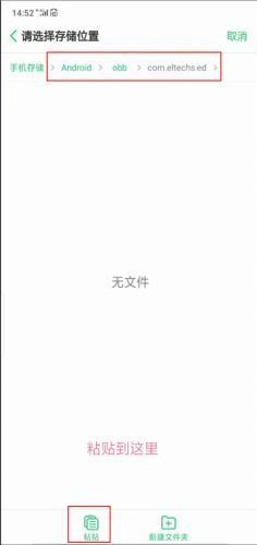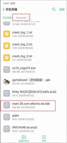 2、下面就是将百度网盘中以“。obb”结尾的文件到download这个文件夹,并复制粘贴到红色框框选中的安装路径上。
