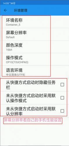 4、下面就是要设置一下参数,像屏幕分辨率、颜色深度、操作模式等,屏幕分辨率是看自己手机性能设置的。