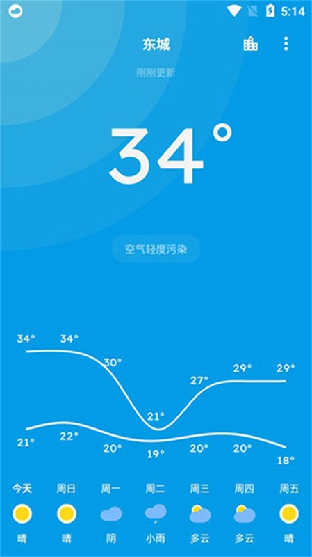 1、Pure天气是一款轻量的天气软件,界面简洁清爽,支持天气预警和空气质量的显示。