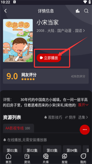 3、进入作品详情页后,轻点“立即播放”按钮,就能开始观看正片内容了。