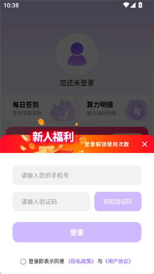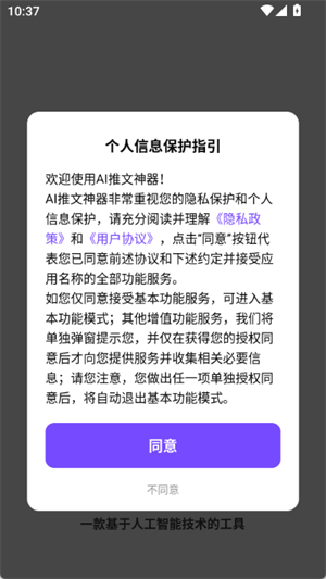 2、打开进入软件,点击同意隐私协议