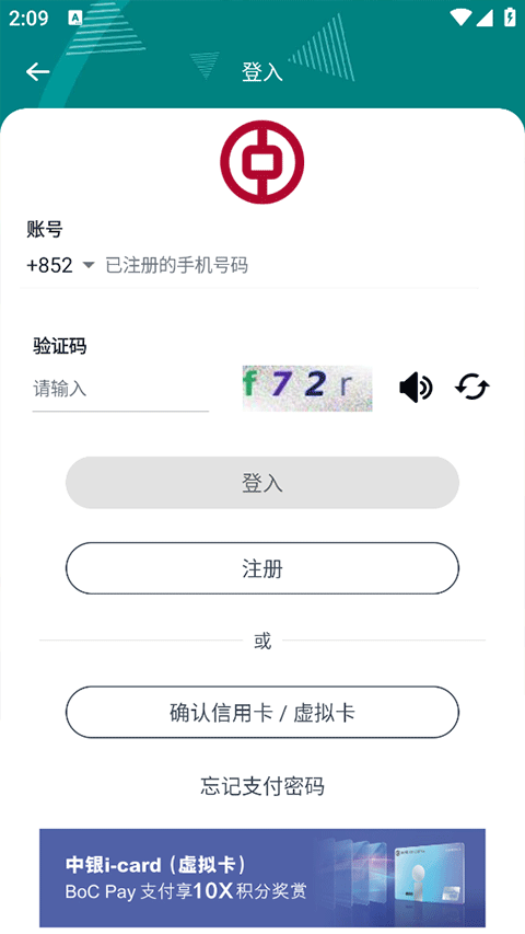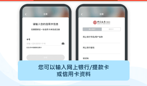 4、若您是中银香港的客户,可输入网上银行信息、提款卡资料或信用卡资料。