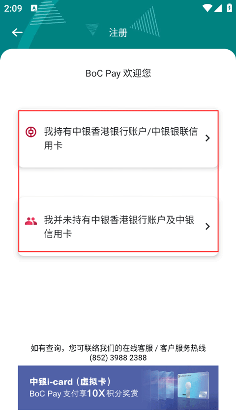 3若还未注册账号,可先进入首页找到注册入口,操作时需根据自身情况选择是否拥有中银香港的银行账户。
