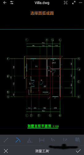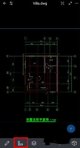 2、点击图纸下方的测量按钮。