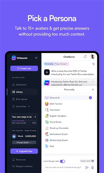 2、为什么能在说话的同时写字呢?你可以用语音指令向ChatSonic询问所需内容,接着让它把回复读给你听,就和Siri或者Google Assistant的使用方式一样——这效果会让你感到意外。