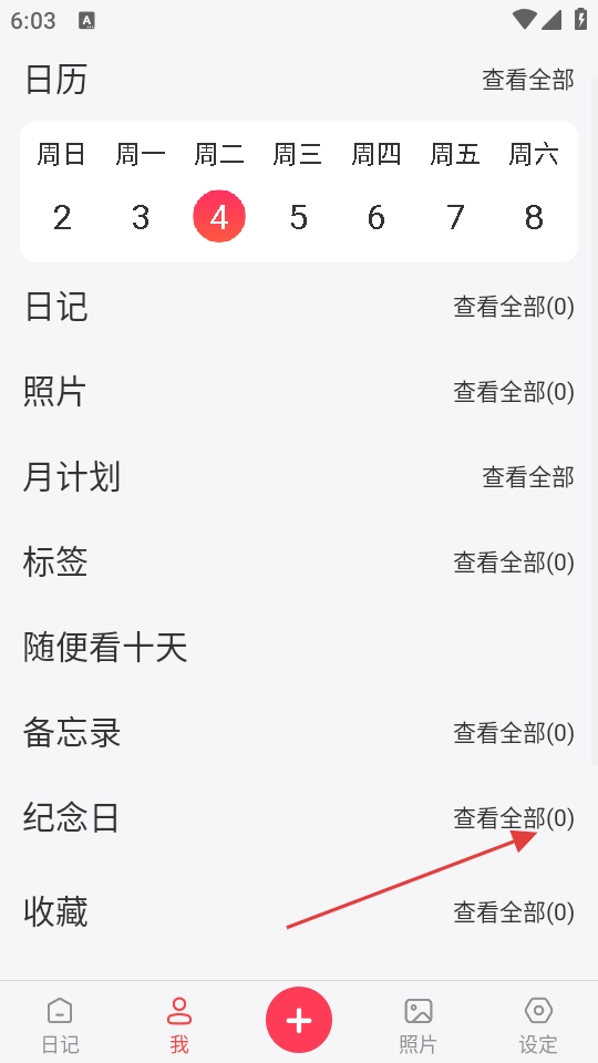 2、在个人中心界面,点击【纪念日】右侧的【查看全部】选项,可进入纪念日管理界面。