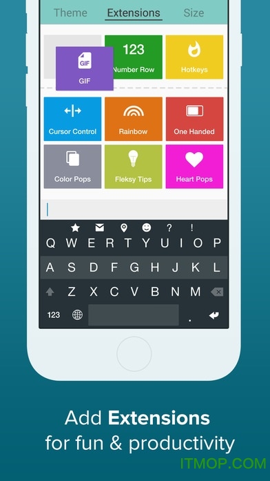 可以利用Fleksy的各类扩展功能,像GIF动图、快捷热键、数字行显示、光标精准控制、单手便捷打字、Imoji趣味贴纸以及彩虹键音效等。