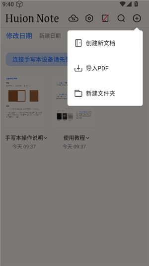 6、点击右上角的加号按钮,就能创建新的文档或文件夹,还可以导入PDF文件。