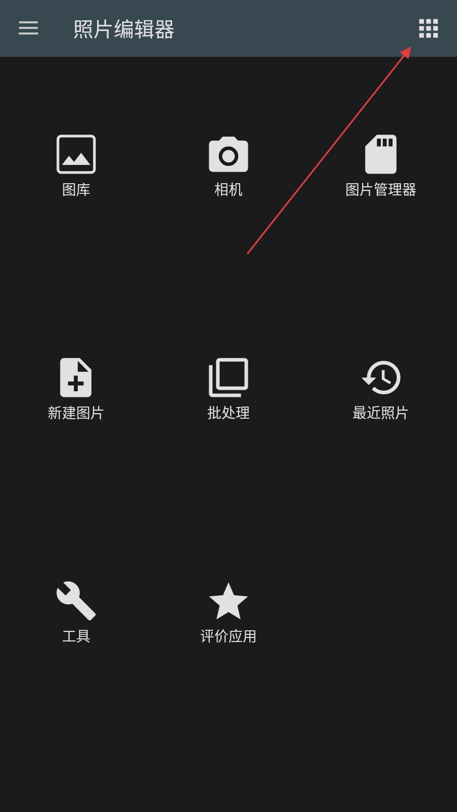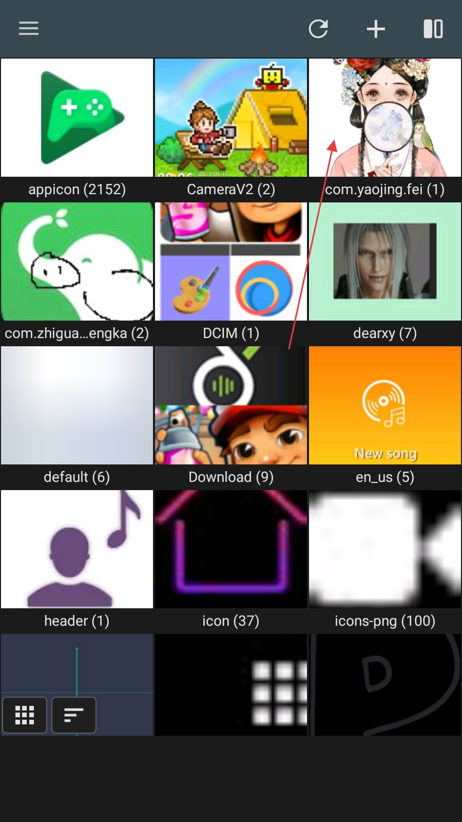 1、点击【右上角网格图标】,进入图片文件夹选择页面。