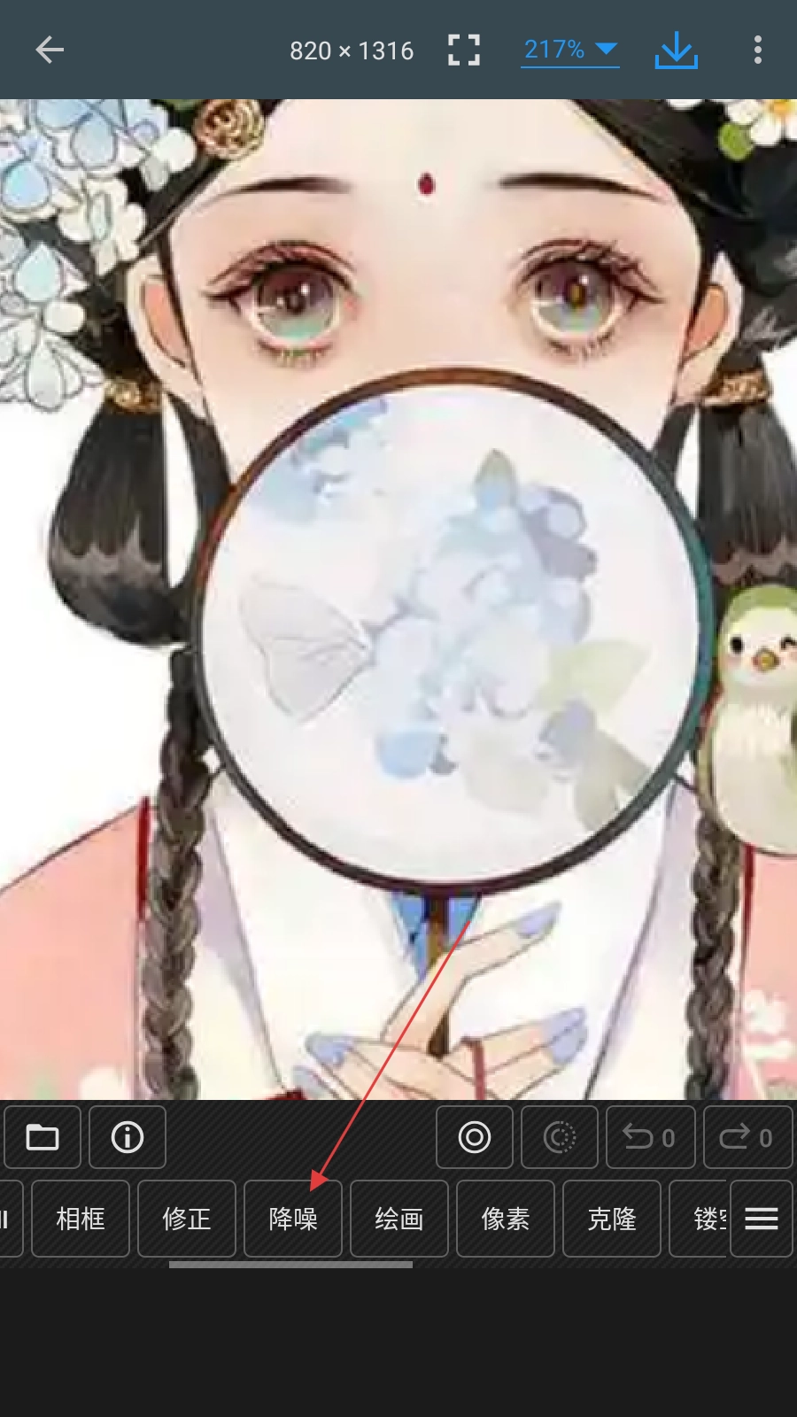 3、进入图片编辑页面后,点击【降噪】,展开降噪选项。
