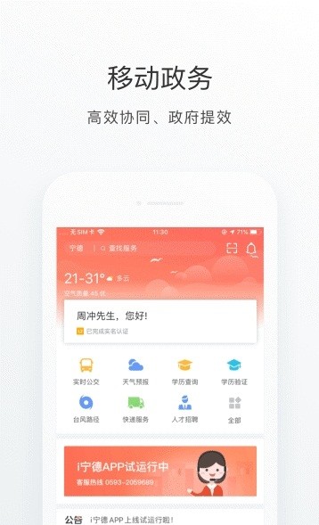 i宁德App是以宁德本地民众为服务核心对象,整合了政务服务、公共服务、便民服务、旅游资讯等各类信息资源的综合性服务平台。