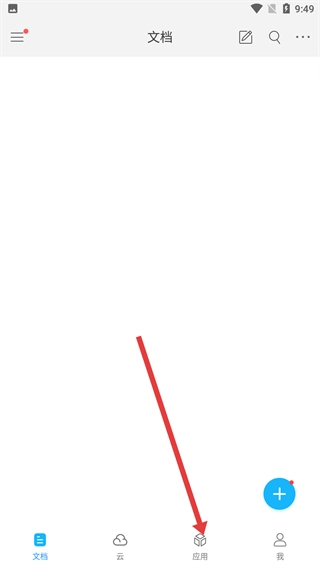 1、在文档页面,点击底部【应用】按钮,进入应用功能板块,可查看各类文档处理工具。