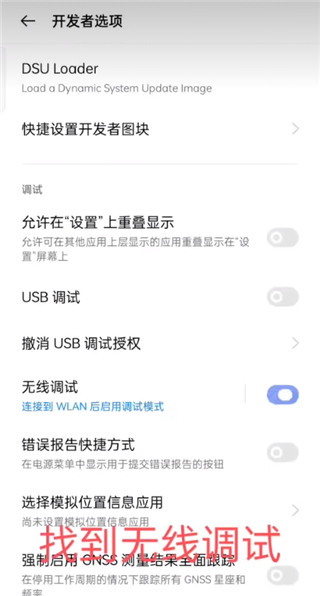 6、找到无线调试;