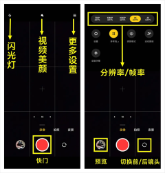 1、顶部选项是视频分辨率和帧率的不同搭配组合,会依据机型呈现出不同的选项及数量,对拍摄视频的大小有着直接影响。