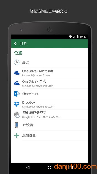 通过安卓设备上的微软Excel应用,只需轻点操作,就能让你不受时间地点限制地打开所需文档。这些文档可以保存在OneDrive、OneDrive for Business以及SharePoint平台上,方便你通过各类设备随时便捷调取查看。