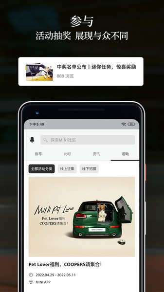 1这是一款面向所有mini汽车用户打造的应用工具,能实现用户与座驾的智能连接,助力大家更便捷、更高效地畅享驾驶体验。