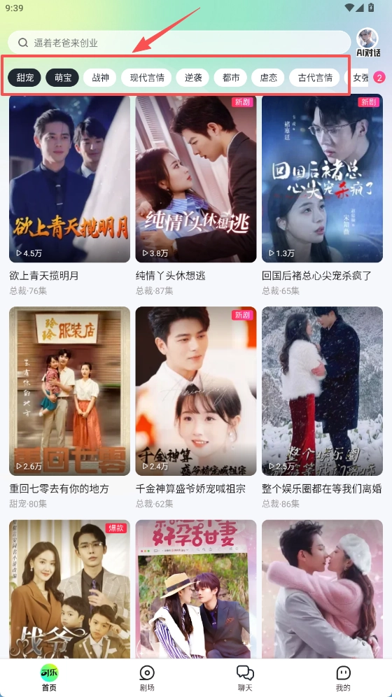 4、利用种类划分功能,按甜宠、都市等类别精准筛选短剧,快速定位符合个人口味的剧集内容。