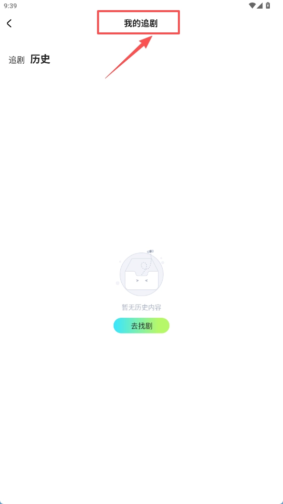 4、打开追剧追踪页,能看到历史记录选项,当前无记录。
