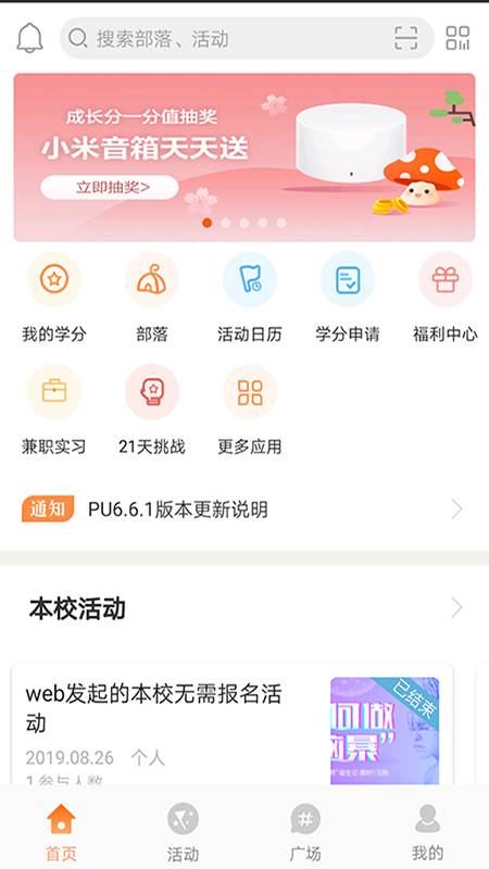 2在PU平台上,同学们能够参与学校第二课堂的全部相关活动,并且可以获取相应的实践学分。