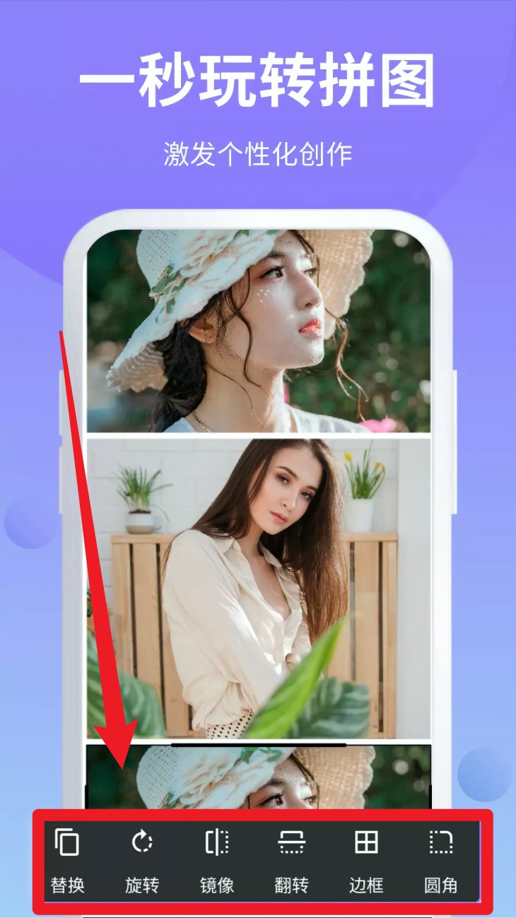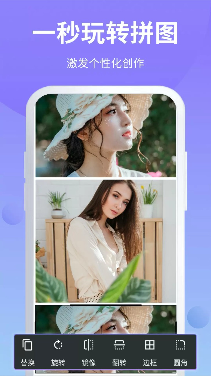 4借助拼图工具可将多张照片拼接在一起,还能对照片进行旋转、添加边框、调整镜像效果以及设置圆角等多样化的排版处理,打造出独具特色的组合效果。