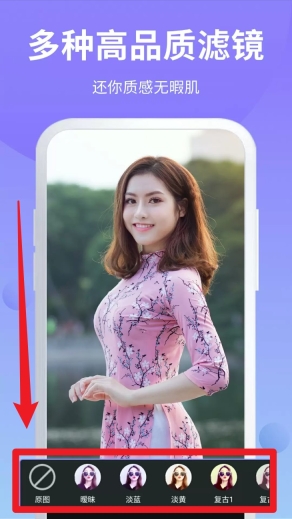 3. 可在滤镜区域挑选淡蓝、复古等不同风格的滤镜,实时查看效果并自由切换风格。