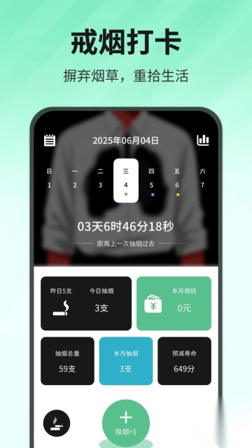 1通过呈现无烟时长、累计省下的开销、减少吸入的香烟总数等多元反馈形式,为用户持续注入坚持下去的能量。
