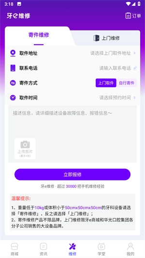 3、若您的相关设备出现损坏,可点击维修选项,填写地址信息后,会有专业人员上门提供维修服务。