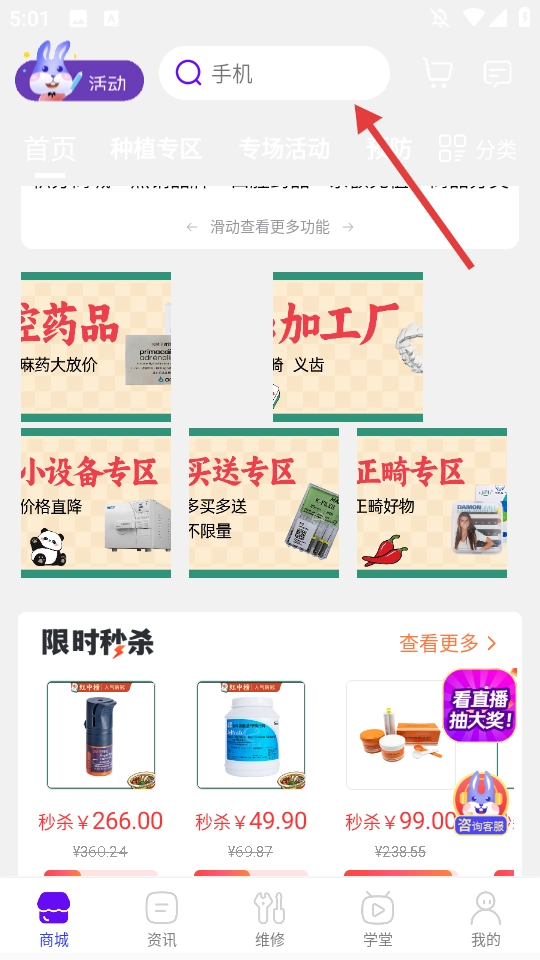 1、启动软件后进入首页的商城板块,这里陈列着各类可供选购的商品。