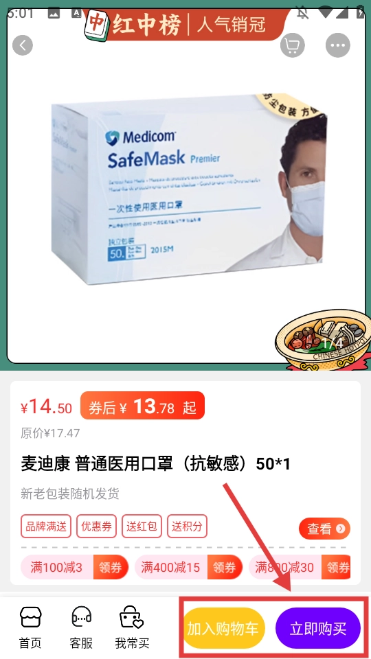 4、可选择【加入购物车】或【立即购买】,完成商品购买操作。