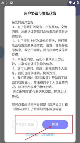 1、仔细阅读【用户协议与隐私政策】的内容后,点击【同意】按钮,就能确认接受相关协议并进入后续的操作流程。