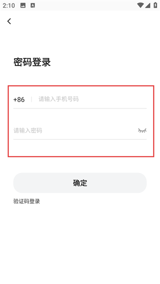 4、切换到【密码登录】界面,填写【请输入手机号码】和【请输入密码】这两个栏目的内容,然后点击【确定】按钮,就能完成登录操作了。
