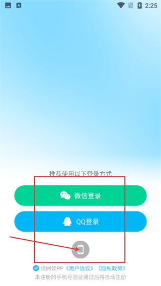 在登录界面,你可以选择【微信登录】或【QQ登录】,也能点击下方的图标切换到手机号登录的方式,不过要先勾选相关的协议选项才行。