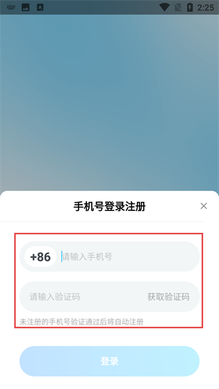 3、进入【手机号登录注册】页面后,先在【请输入手机号】的输入框中填写号码,接着点击【获取验证码】按钮,待收到验证码后将其填入对应栏位,这样就能完成登录操作了。