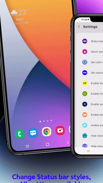 2. 能够自定义状态栏的时间、电量、信号、WiFi 图标,达成小细节的个性化。