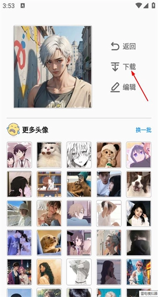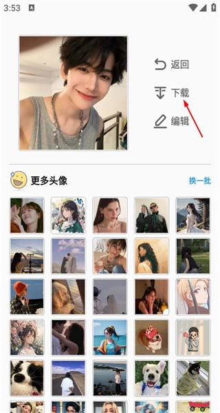 2、挑选其中一个头像,进入该头像的详情页,能看到返回、编辑等选项,可对这个头像进行后续操作。