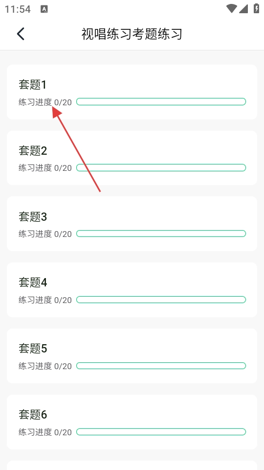 2、在视唱练习考题练习页面,选择【套题1】,进入套题选择环节。
