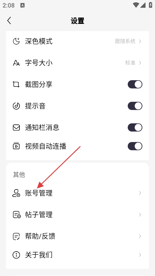 3、在设置页面中,找到并点击【账号管理】选项,可进入账号管理界面。