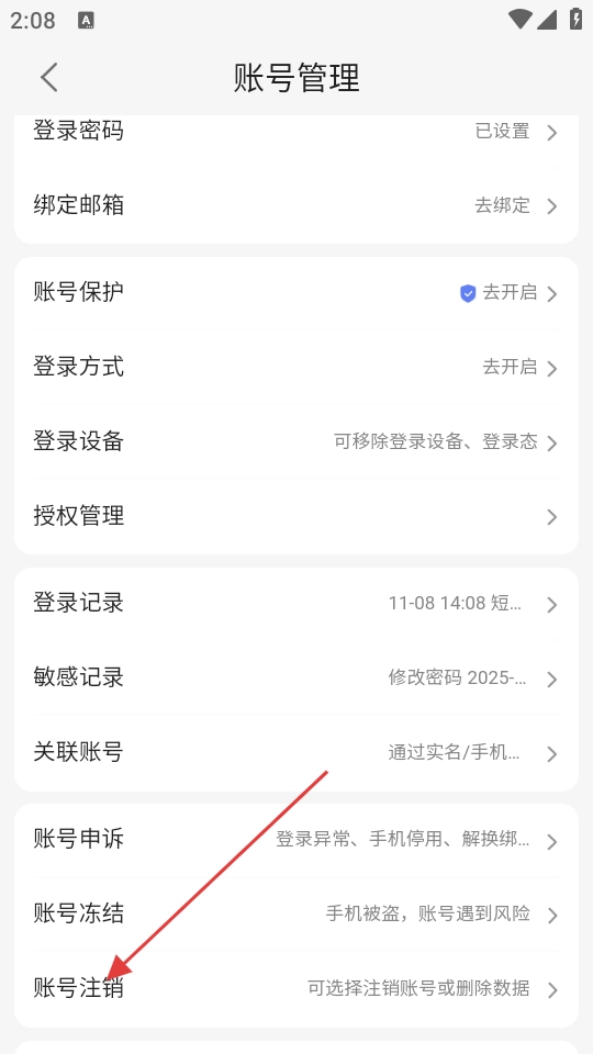 4、在账号管理界面中,可进行账号注销操作。