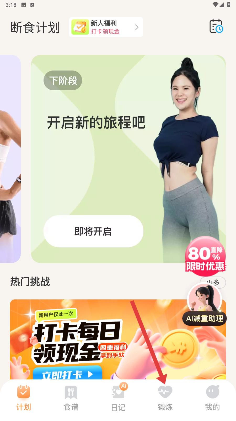 在【怪兽轻断食】App里,找到【锻炼】选项并点击进入,就能开启你的锻炼之旅啦。
